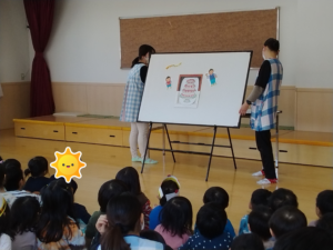 久しぶりに、2~5歳児クラスが集まった行事となりました。誕生児は、前に出てくることにちょっぴり恥ずかしそうにしながらもとっても嬉しそうでした♡幼児さんは、インタビューに恥ずかしながらもしっかり答えていましたよ☆