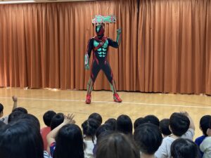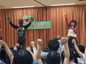 2025.12.10 くりの木保育園, くり園日記 仮面ライダーゼッツが保育園にやってきた!! 10月の暑ーい日に、なんとくりの木保育園に 仮面ライダーゼッツがやってきました! ゼッツの登場に驚きを隠せない子どもたち! ゼッツと一緒に体操を踊ったり、写真を撮ったりと楽しい時間を過ごしました♡